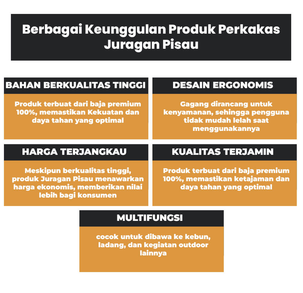 • Serbaguna, cocok untuk dibawa ke kebun, ladang, dan kegiatan outdoor lainnya